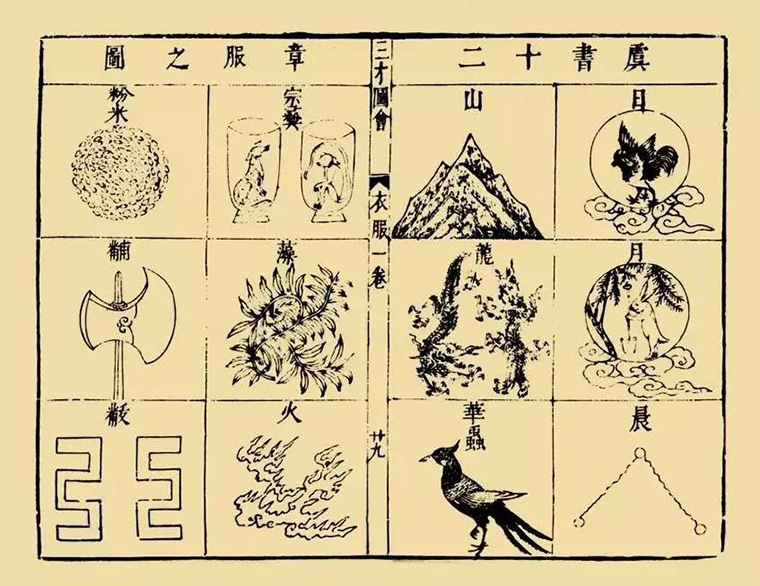 當(dāng)時(shí)袁世凱指定周樹人、許壽裳和錢稻孫三人合作設(shè)計(jì)圖樣。國(guó)徽的設(shè)計(jì)結(jié)合了傳統(tǒng)十二章圖案(帝制時(shí)代服飾等級(jí)標(biāo)志):日、月、星辰、山、龍、華蟲、宗彝(yí)、藻、火、粉米、黼(fǔ)、黻(fú),大意就是祝愿國(guó)運(yùn)昌盛長(zhǎng)長(zhǎng)久久。